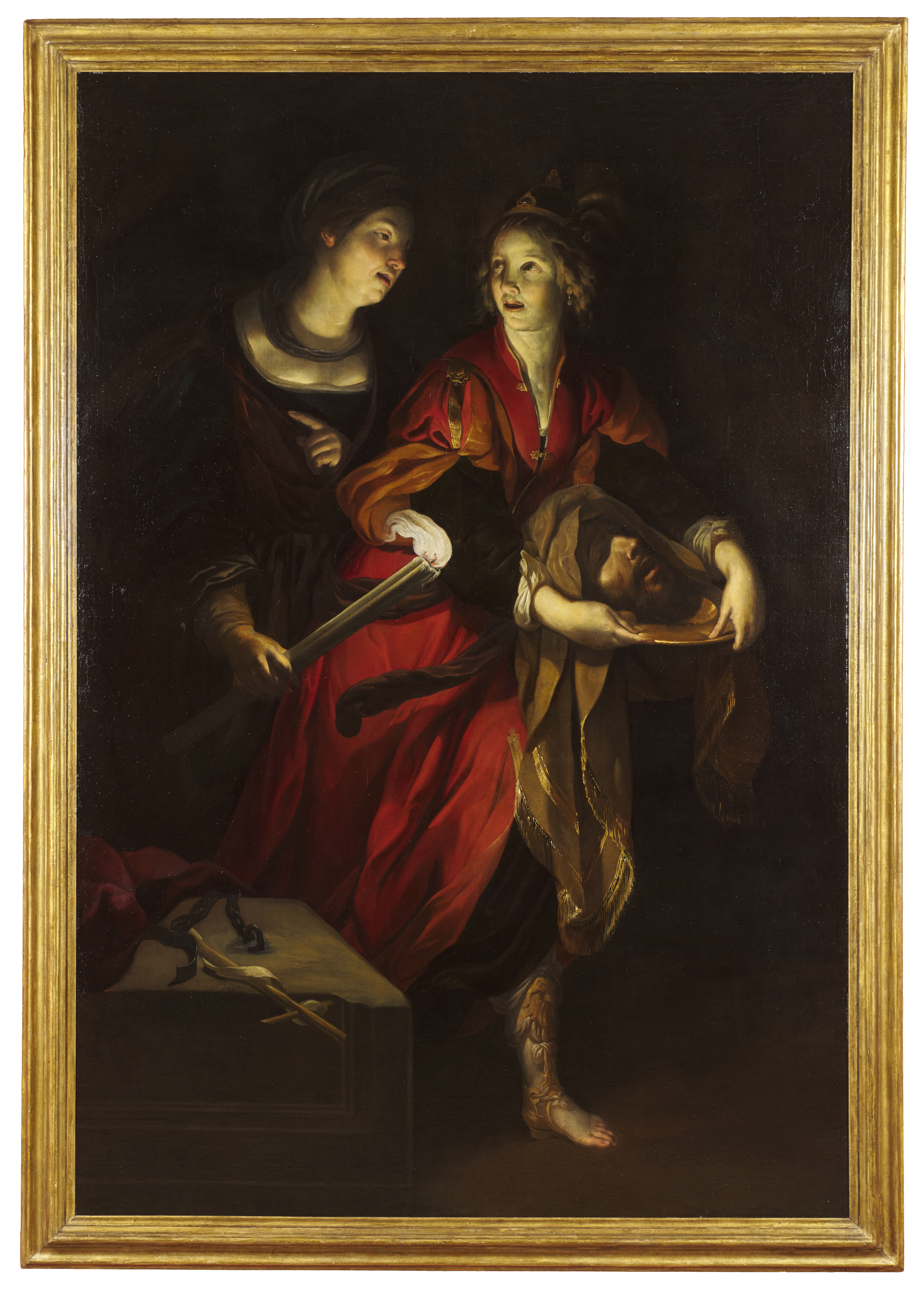 Probablement Rome, collection du cardinal Lorenzo Magalotti (Florence, 1585 – Ferrare, 1637) entre 1624 /1625 et 1637 : « n° 38 Un quadro grande A. p.mi. 9 0/2 largo palmi 6 1/3 con due figure del Naturale una che tiene in mano su un bacile una Testa, et l’altra tiene in mano una Torcia acesa, e a piedi una Croce in Tela con cornice nera rabescata doro del Prostichino scudi 80» (voir Fumagalli in note 1). Gênes, collection particulière.