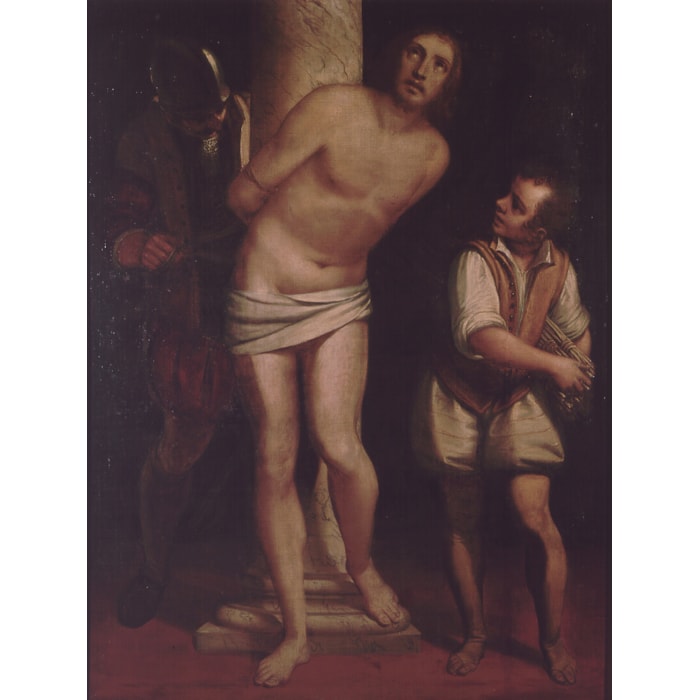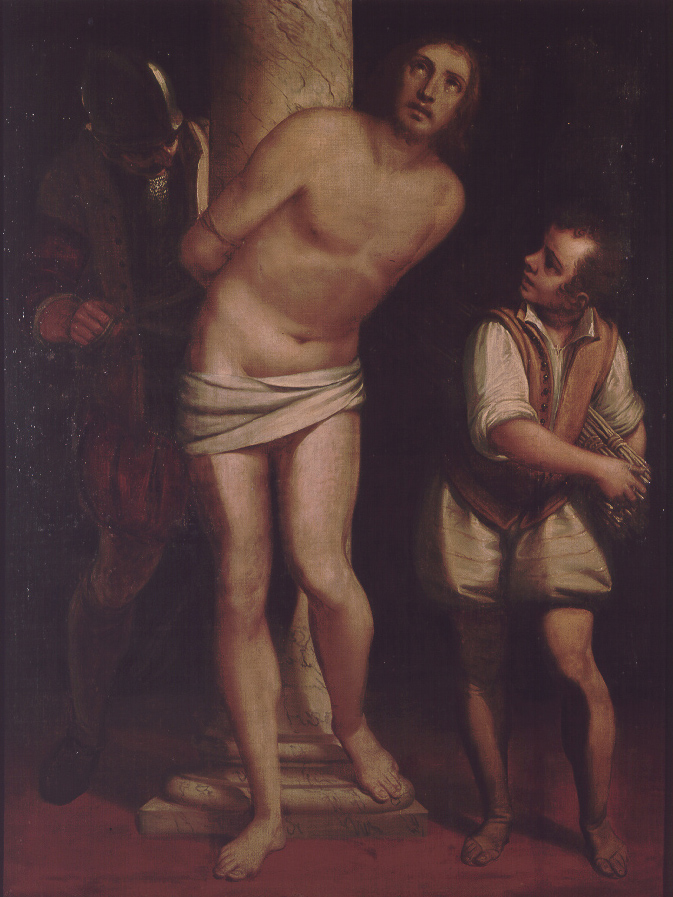 As for the subject of Christ disrobed by his tormentors, Carlo Giuseppe Ratti mentions having seen such a painting in the last of the six chapels in the convent church of San Francesco di Castelletto (now destroyed).1 However, it is hard to assert that this could have been our painting as there is a record of another version in a private collection in Moneglia (see Comparative work, above). Together with the figures of Christ and the child, a variant of the Christ at the Column (Genoa, Musei di Strada Nuova – Palazzo Bianco, fig 3) only includes the one helmeted soldier busy tying the Messiah’s hands to the column.